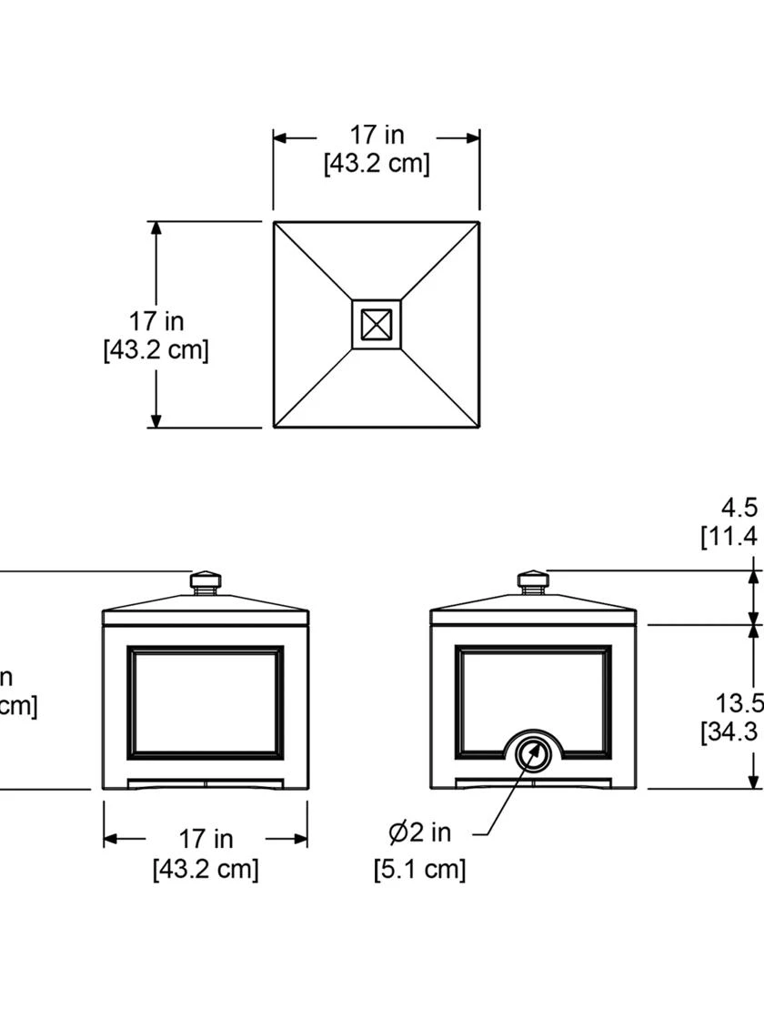- 17″ square x 18″ H