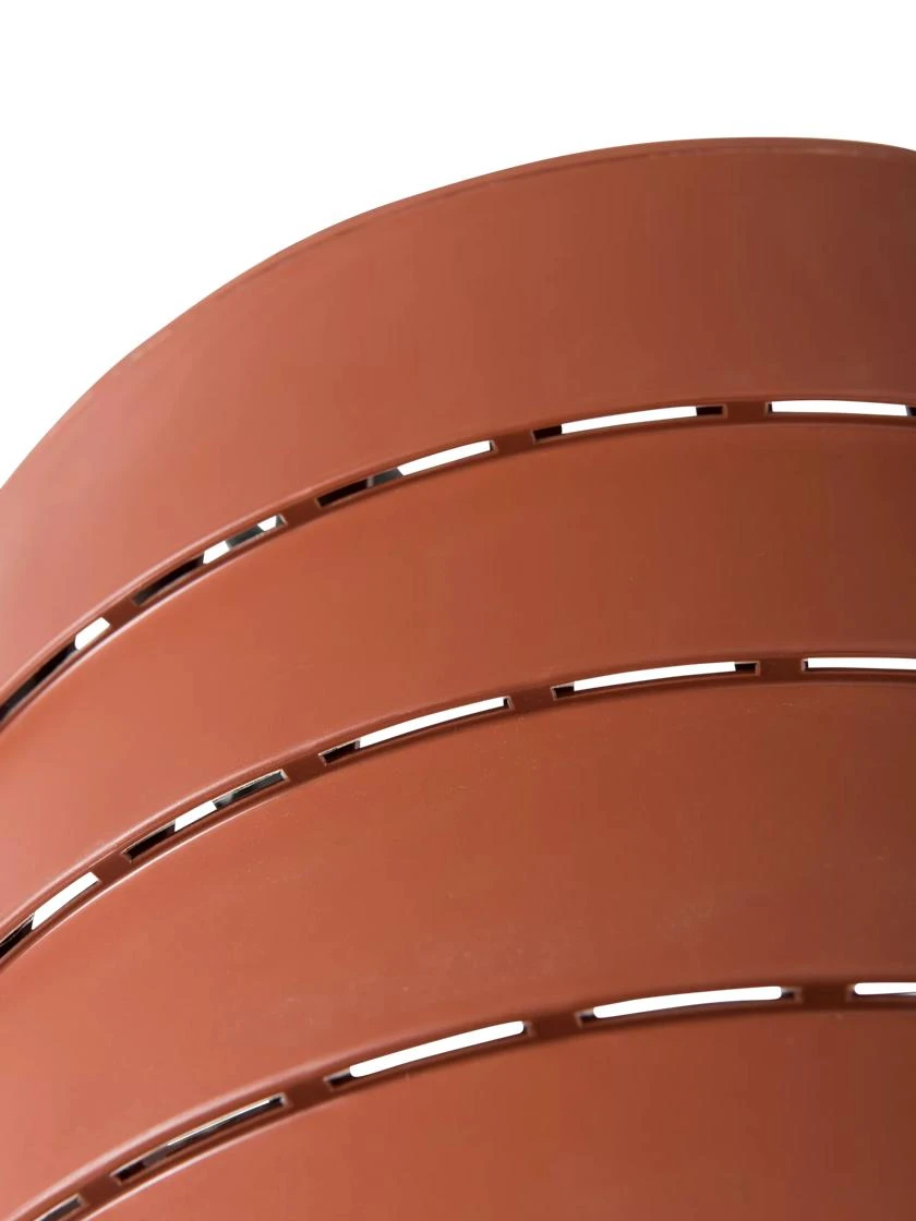 - Polypropylene, aluminum, powder-coated steel, polyethylene